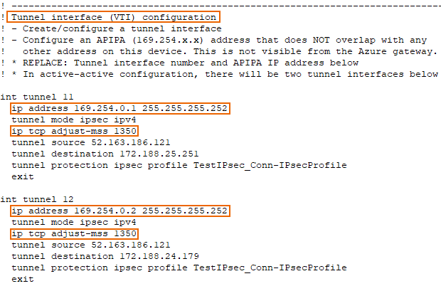 Tunnel interface (VTI) configurationセクションに移動します。-