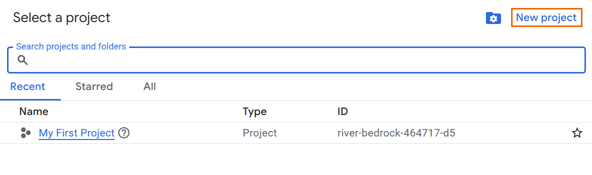 Next to Google Cloud, click Select a project.