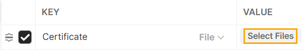 2. Under Value, click Select files and select the certificate file you stored on your computer.