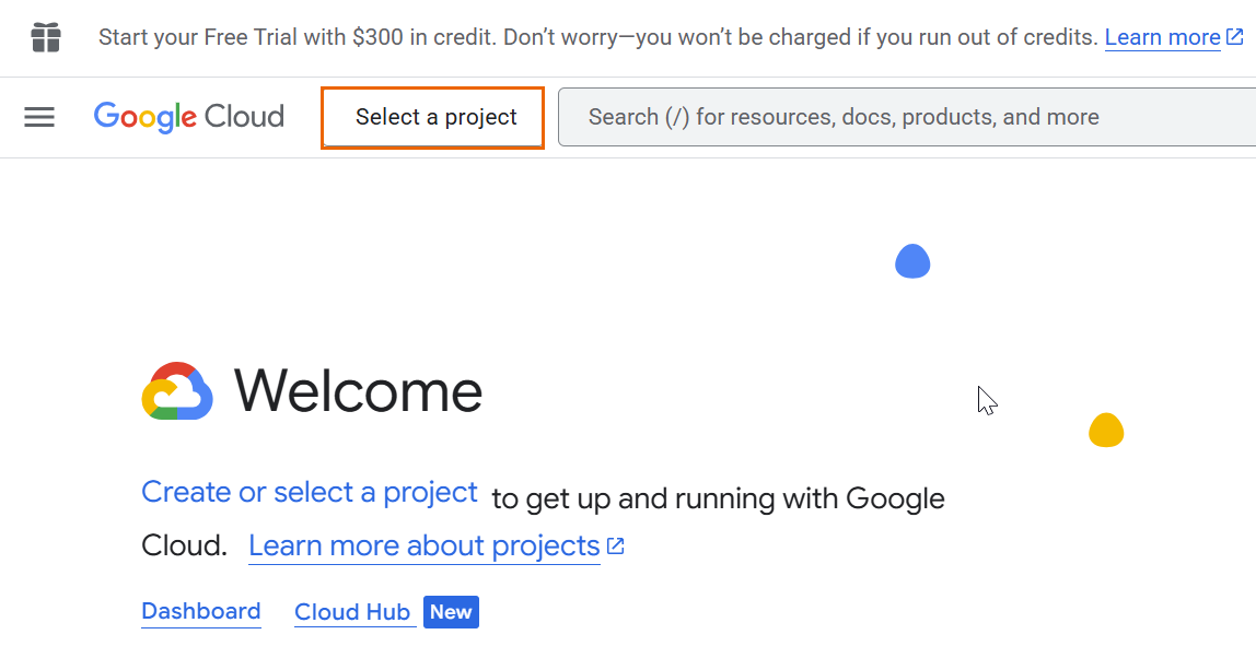 Next to Google Cloud, click Select a project.