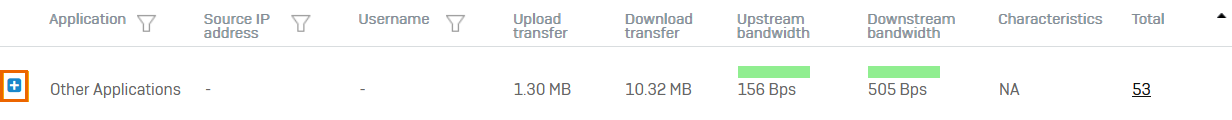 - Total: Total number of connections for the application, username, or source IP address.