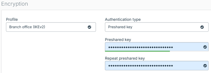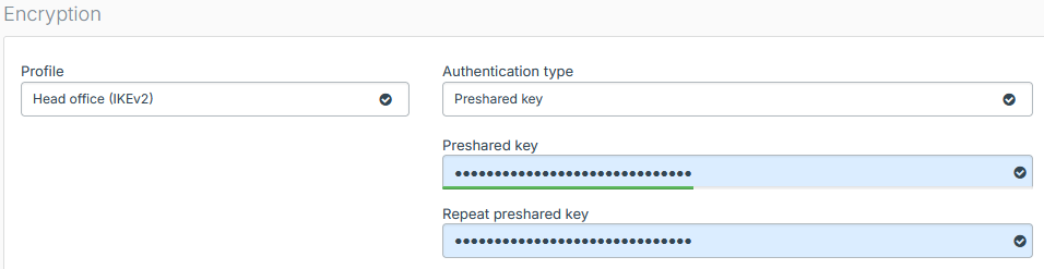 - For Authentication type, select Preshared key.