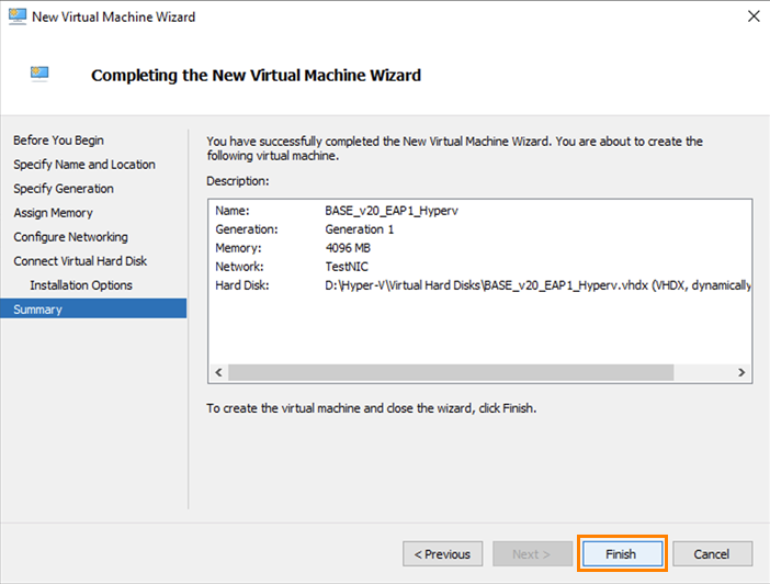 Verify the summary and click Finish.