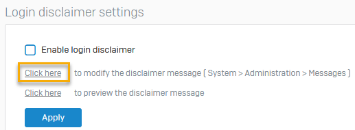 管理者が Sophos Firewall にサインインするときに毎回表示されるログイン免責事項を設定できます。