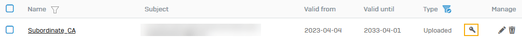 署名 CA の秘密鍵が、ファイアウォールにアップロード済みであるかどうかを確認できます。