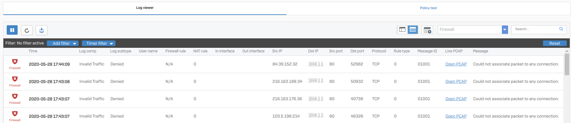 ファイアウォールルール: ファイアウォールが、接続の Destroy イベントを受信して接続を切断したタイミングで、セッションがログに記録されます。