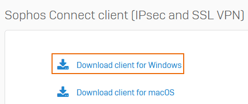 「Sophos Connect クライアント (IPsec と SSL VPN)」で、「Windows 向けのダウンロード」をクリックします。