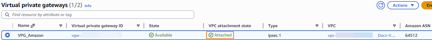 - 作成した仮想プライベートゲートウェイ(VPG)をクリックします。