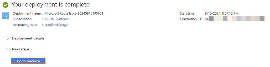 展開が完了したら、「リソースに移動」をクリックして、詳細を表示します。