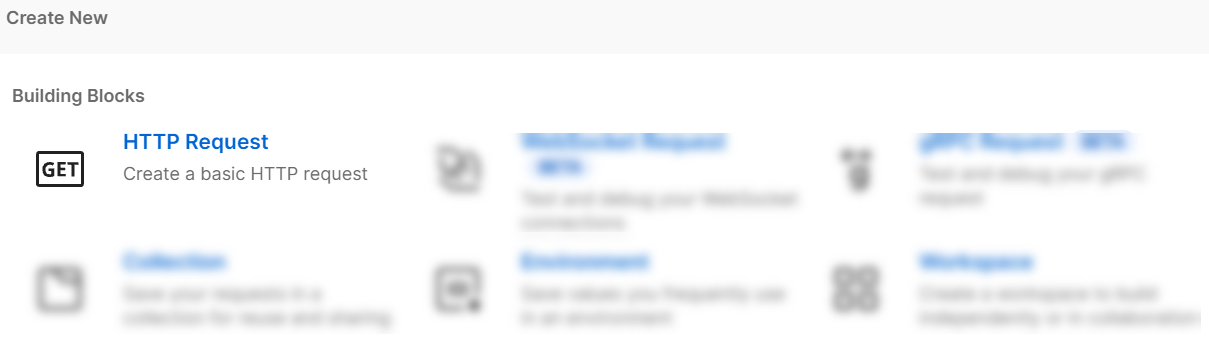 Open the Postman app and click New in your workspace.