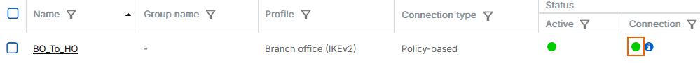 To see the firewall rules, go to Rules and policies > Firewall rules and click the Automatic VPN rules rule group. You'll see two firewall rules named Incoming BO_To_HO and Outgoing BO_To_HO.