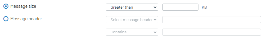 Follow the on-screen instructions and select from specific headers, source, or message size. The bottom of the filter has the option to match all attributes or if one is present: